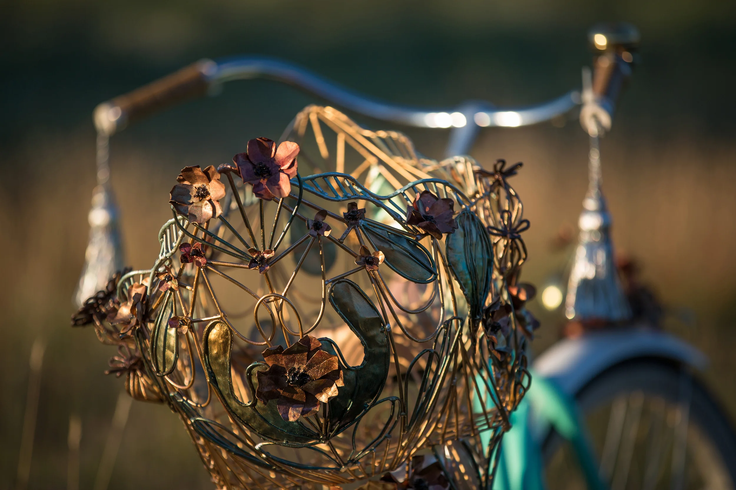 In the spirit of re-writing history, I seek a patina for each bike; the story of its journey would be written in the paint. The viewer should be challenged as to whether the additional metal work is as old as the bike or as new as our present reality. When you view these vehicles, you can perceive the life of the owners, catching a glimpse of a heroine. Imagine the mystery of a life peddling tinctures, or catching stars in the heavens.